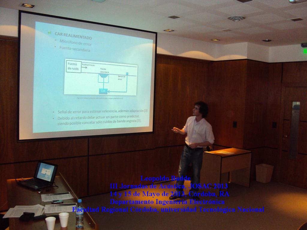 CA: Acto de apertura de las III Jornadas de acústica (JOSAC 2013) e inicio de la primera jornada. Inicio: 15:05 hs. Disertante: Ing. Sebastián Ferreyra.